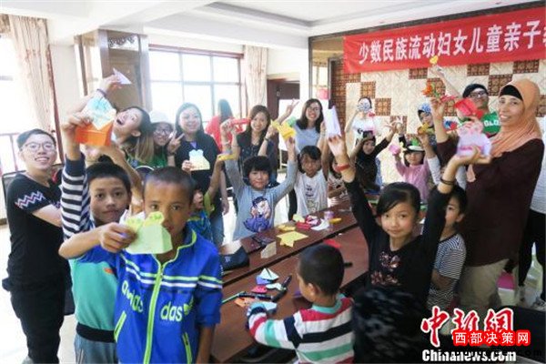 圖為活動(dòng)小組為城市流動(dòng)兒童開(kāi)設(shè)的手工親子課。