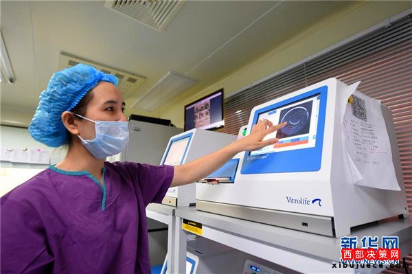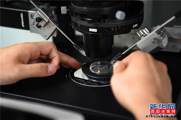 重慶市遺傳與生殖研究所實驗室工作人員在顯微鏡下對胚胎進行操作