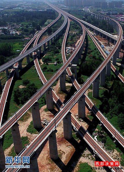 鄭州東站附近一處京廣、徐蘭高鐵交匯的立體樞紐(9月1日攝)。