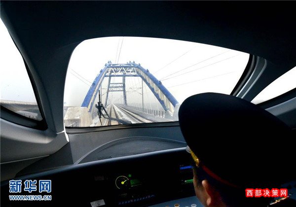 京廣高鐵一列動(dòng)車組列車經(jīng)過(guò)鄭州黃河大橋(2012年12月22日攝)。
