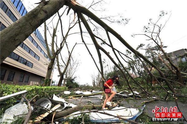 登陸點(diǎn)大量行道樹被風(fēng)吹倒。