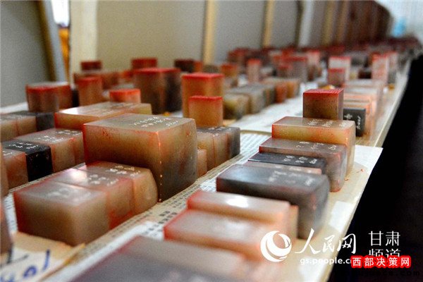 同時,敦煌正覺寫經(jīng)院又組織篆刻書寫了50米真絲長卷的《道德經(jīng)》,并附20幅老子出關(guān)圖。該長卷采用篆刻方式,先將《道德經(jīng)》全文篆刻在大小不等的壽山石印章上,再將印章按照經(jīng)文順序印在真絲絹和皮紙上。每一句經(jīng)文刻一枚印章,刻章用的壽山石達(dá)一噸有余。