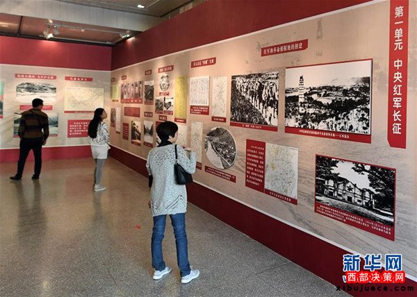 10月8日,參觀者在甘肅省博物館觀看主題展覽。當日,甘肅省紀念紅軍長征勝利80周年主題展覽在甘肅省博物館開展。展覽以“弘揚長征精神堅定理想信念”為主題,展示紅軍長征的光輝歷史,展現(xiàn)了紅軍長征的光輝征程。