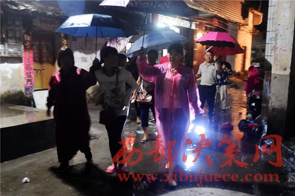 10月18日,欽州市東風社區(qū)的工作人員在轉移危房群眾。