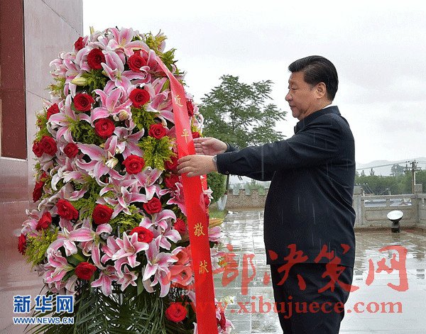 2016年7月18日至20日,中共中央總書記、國家主席、中央軍委主席習(xí)近平在寧夏調(diào)研考察。這是7月18日上午,習(xí)近平在固原市西吉縣將臺(tái)堡向紅軍長征會(huì)師紀(jì)念碑敬獻(xiàn)花籃。新華社記者李濤攝
