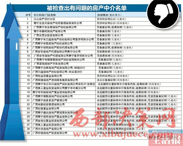 南寧市住房局通報房地產中介專項執(zhí)法檢查結果