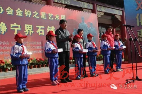 市委書(shū)記鄭亞軍致辭,慰問(wèn)演出活動(dòng)由靜寧縣委書(shū)記王曉軍主持。鄭亞軍指出,平?jīng)鍪且粋€(gè)古老而又神奇的地方,更是一塊紅色的熱土。1935年8月到1936年10月,紅一、二、四方面軍和紅二十五軍全部過(guò)境平?jīng)?,紅色足跡遍及平?jīng)銎呖h區(qū)。界石鋪?zhàn)鳛榧t軍三大主力靜會(huì)地區(qū)會(huì)師的“中心基地”,是紅軍長(zhǎng)征途徑的主要地區(qū),留下了毛澤東、周恩來(lái)、張聞天等五位黨和紅軍領(lǐng)導(dǎo)人,開(kāi)國(guó)十大元帥中的九位元帥,十大將軍中的八位將軍,還有57位上將中的47位、177位中將中的161位、千余位少將和數(shù)萬(wàn)紅軍將士的歷史足印,在中國(guó)革命史上具有重要的歷史地位,發(fā)揮了重要的作用。