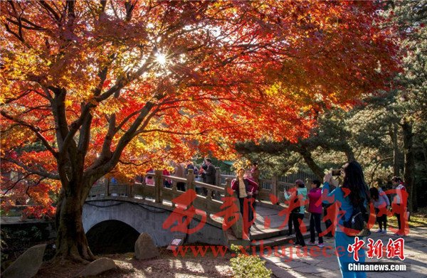 連日來,天氣晴好,江西廬山風景區(qū)的紅葉已達到了最佳觀賞期。只見廬山植物園、花徑、如琴湖一帶萬眾期待的雞爪槭已經(jīng)悄然換上了紅妝,吸引著眾多游客和攝影愛好者的到來。