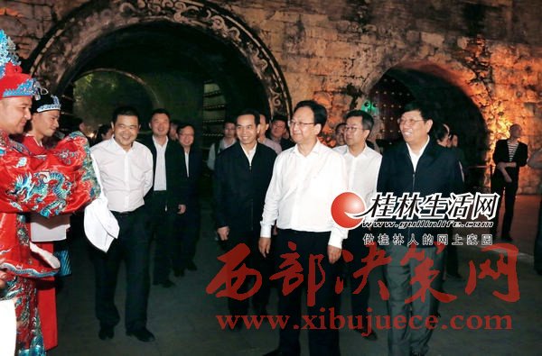 景俊海一行還來到正陽東巷歷史文化街區(qū)進(jìn)行調(diào)研。經(jīng)過修繕改造后的正陽東巷歷史文化街區(qū),青磚黛瓦、古色古香,夜晚大紅燈籠高高掛起,許多中外游客徜徉其間,仿佛有種時(shí)光穿梭之感。景俊海一行沿著古樸的巷子,認(rèn)真聽取了關(guān)于東巷改造情況介紹,并饒有興趣地參觀了保護(hù)修繕后的馬啟邦舊居、岑氏公保弟舊址等。他還登上恢復(fù)重建的桂林逍遙樓,一邊參觀一邊聽取逍遙樓的歷史典故、重建情況等介紹,對(duì)桂林市委、市政府實(shí)施“尋找桂林文化的力量,挖掘桂林文化的價(jià)值”戰(zhàn)略,精心設(shè)計(jì)、挖掘和保護(hù)桂林歷史文化表示充分肯定。景俊海一行還前往愚自樂園法國地中海俱樂部桂林度假村、“兩江四湖”環(huán)城水系工程、靖江王府、臨桂新區(qū)“一院兩館”(桂林大劇院、桂林博物館、桂林圖書館)、桂林崇華中醫(yī)文化街等文化項(xiàng)目進(jìn)行調(diào)研。