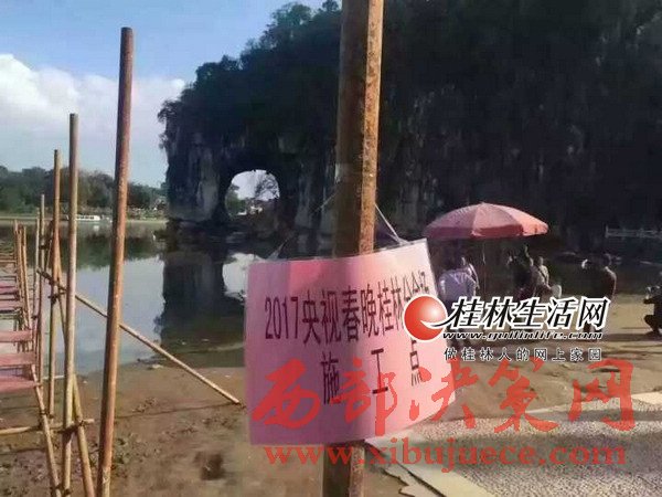 為了真正體現(xiàn)東西南北中,全民大聯(lián)歡,2017年央視春晚延續(xù)2016年春晚特色,特別設(shè)置了東西南北四大分會(huì)場,桂林憑借秀美的山水風(fēng)光和厚重的歷史文化底蘊(yùn),被確定為2017年央視春晚南方分會(huì)場。17日上午,景俊海一行來到2017年央視春晚桂林分會(huì)場外景地象山景區(qū)。象鼻山被薄霧籠罩,如夢(mèng)似幻,漓江煙波渺渺,美不勝收,山水和諧相融構(gòu)成了中國南方最具代表性的自然美景。從11月12日起,春晚桂林分會(huì)場舞臺(tái)搭建工作已經(jīng)進(jìn)場,工人正在用一根根鋼管搭建水上舞臺(tái)。
