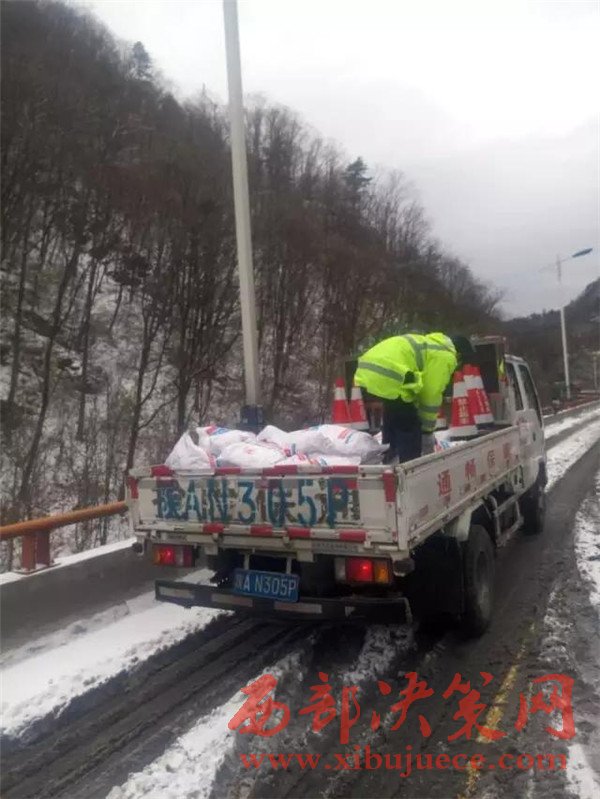 陜西高速集團西漢分公司緊急啟動預案,所有工作人員包括路政、養(yǎng)護,消防、機關(guān)管理、收費班倒休人員,全部上路進行疏導保暢,高速集團主要領(lǐng)導第一時間趕往現(xiàn)場指揮疏導。西漢分公司出動了所有的除雪設(shè)備,撒播融雪劑和防滑沙,對造成擁堵的車輛實行緊急救援,采取生火解凍油路,路面鋪砂解決防滑,拖車清除事故車輛等方式疏導擁堵點。同時還從關(guān)中和陜南緊急調(diào)撥除雪設(shè)備和人員上路除雪,全力幫扶困在路上的車輛和人員,機關(guān)管理和收費人員在車輛被困路段及時向被困人員解釋道路擁堵情況,積極幫助受困人員,送去了礦泉水、面包和火腿腸等應急食品。