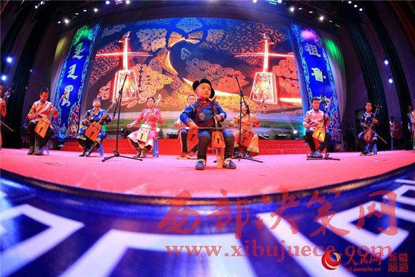 11月22日,博湖縣“祖魯節(jié)”晚會(huì)現(xiàn)場(chǎng),當(dāng)?shù)厍嗌倌瓯硌蓠R頭琴齊奏《開都河》。