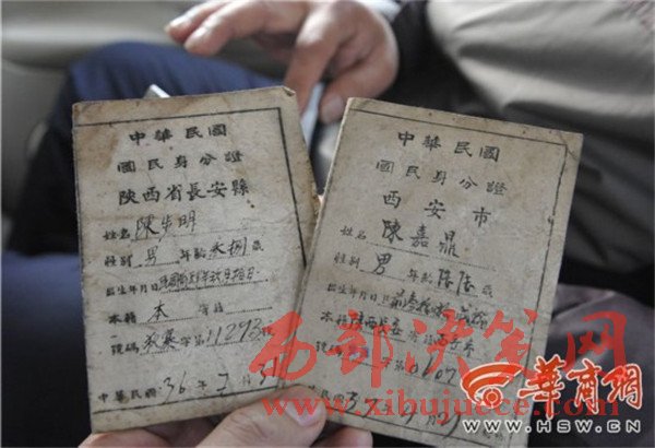 陳先生是西安市灞橋區(qū)席王街辦西蔣村村民,今年4月,他翻建老房子時,發(fā)現(xiàn)一個木盒,里邊裝著他祖父、曾祖父民國時期的身份證以及其他一些東西。