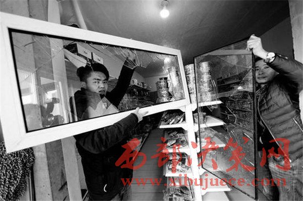 令趙女士沒想到的是,27日下午5點(diǎn)多,這群人又出現(xiàn)了。當(dāng)時趙女士的兒子田江正在里屋吃飯,外面的防盜門虛掩著,突然七八個男子帶著洋鎬把就沖了進(jìn)來,沖著貨架一通亂砸。田江說:“我聽見響動掀開門簾出來,都是蒙面的小伙,我聽清楚了對方的一句話‘還敢開還砸!’,我當(dāng)時看著對方人多,沒敢追。”目前,趙女士一家已經(jīng)報(bào)警,韋曲派出所正對此事做進(jìn)一步調(diào)查。