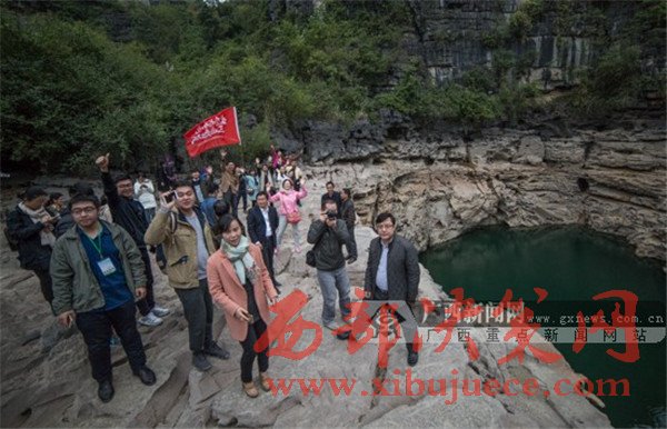 采訪團(tuán)成員領(lǐng)略都安地下河天窗群風(fēng)采。