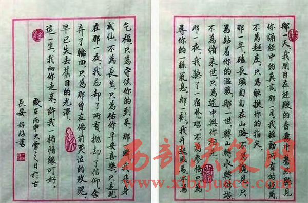 圖為小女孩書寫的倉(cāng)央嘉措的《那一天》