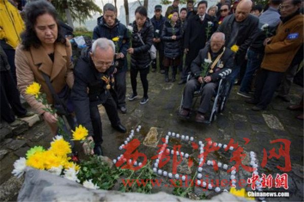 2016年12月12日,在第三個(gè)國(guó)家公祭日來臨之際,參加過1937年南京保衛(wèi)戰(zhàn)的抗戰(zhàn)老兵、侵華日軍南京大屠殺遇難者家屬、南京1213志愿者聯(lián)合會(huì)的志愿者們來到南京光華門遺址公園,向這片曾經(jīng)發(fā)生過激烈戰(zhàn)斗的陣地獻(xiàn)上和平歲月里的悼念菊花。 中新社記者 泱波 攝