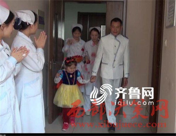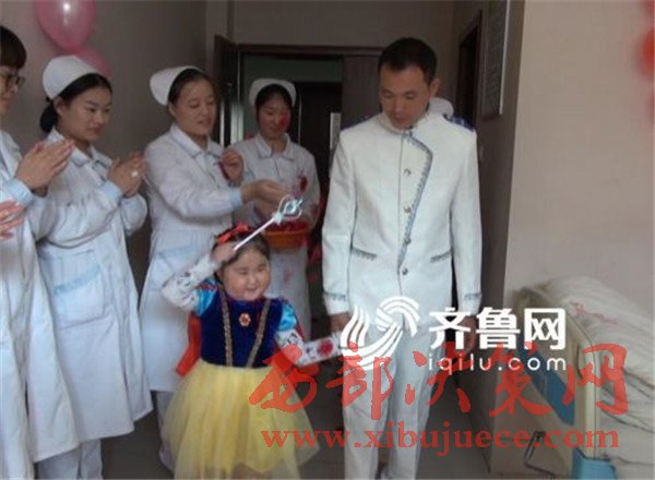 最終他們?cè)卺t(yī)院護(hù)士們的幫助下,決定給孩子辦一個(gè)特殊的婚禮,美麗的“小海青”公主嫁給了她的“白馬王子”。