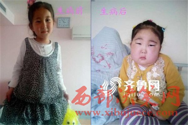 近3個(gè)月因服用激素類藥物,小海青被“催熟了”,體重增加了12斤,曾經(jīng)精靈可愛的女孩變成了“胖女孩”。