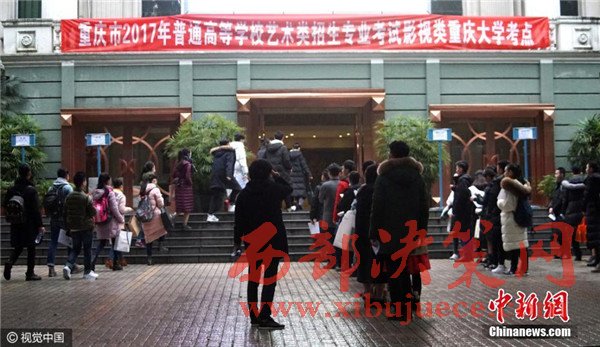 12月14日,重慶市,沙坪壩區(qū),重慶大學(xué)美視電影學(xué)院考點,考生們走進考場。當天,重慶市2017年普高藝術(shù)類招生專業(yè)考試開考,考場外云集了大量夢想明星生涯的美女帥哥以及前來陪伴的親朋好友。