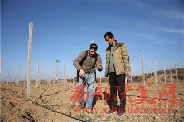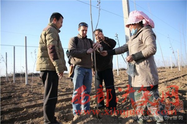 12月8日上午8時(shí)30分,淳化縣卜家鎮(zhèn)蔣家山村,當(dāng)?shù)毓r(nóng)剛吃完早飯,林東已從100多公里外的西安趕到這里,他一邊用熟練的中文問大家“咥飽了沒有”,一邊從背包里掏出果樹剪刀,走進(jìn)地里查看樹苗的過冬情況。果園的技術(shù)員拿個(gè)大本子跟在林東后邊做記錄,遇到難點(diǎn)林東就親自示范。