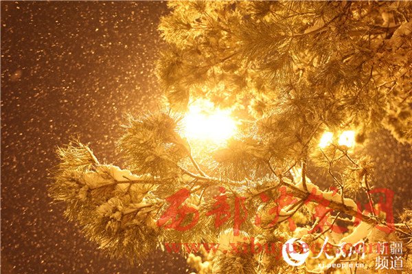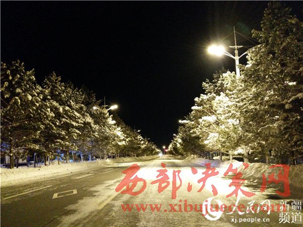 在路燈的照耀下邊城雪夜盡顯華麗