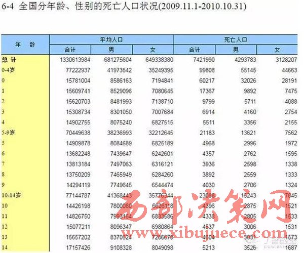 我們不妨先來看一看國家統(tǒng)計(jì)局2010 發(fā)布的年全國第六次人口普查的數(shù)據(jù)。