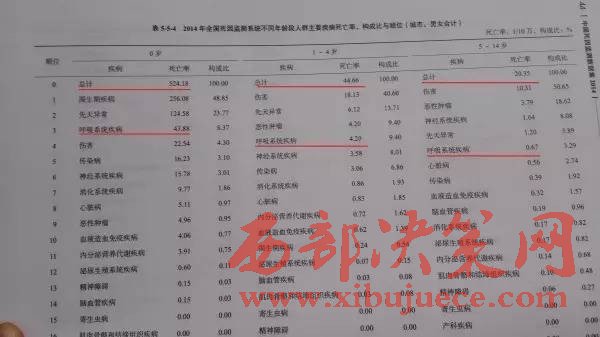 我們?cè)賮砜催@份國家衛(wèi)計(jì)委和中國疾病預(yù)防中心發(fā)布《中國死因數(shù)據(jù)集2014》,這是我國最權(quán)威的死因數(shù)據(jù)報(bào)告,其中兒童各年齡段的死亡率寫得很清楚。