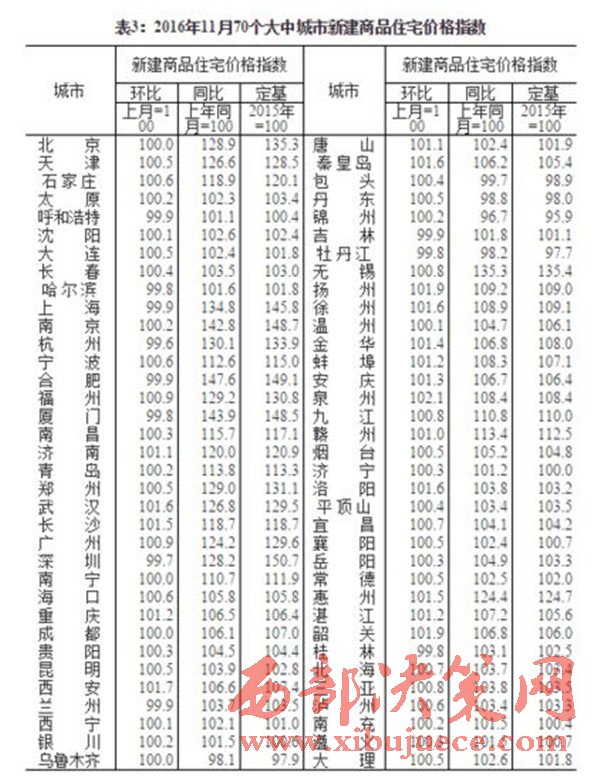 原標題:國家統(tǒng)計局:11月70城房價降溫 西安漲幅全國第4