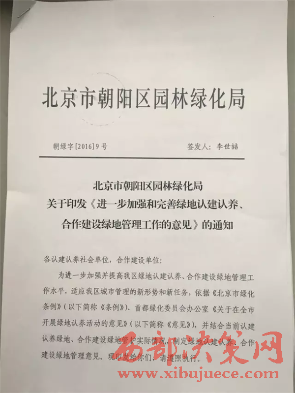 朝陽區(qū)園林綠化局負(fù)責(zé)人承諾將對綠地認(rèn)養(yǎng)建立完善機(jī)制