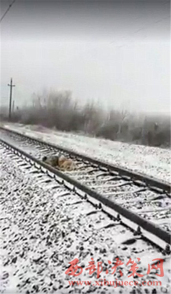 在嚴(yán)寒中,兩只狗狗在鐵軌上蜷縮了兩天,一動不動。Lucy受傷嚴(yán)重,沒法從鐵軌上挪動下來。Panda一直在她身邊保護她,用自己的身體為她保溫,當(dāng)有火車逼近時,Panda想盡辦法把Lucy的頭按下,讓火車可以在它們頭頂經(jīng)過。