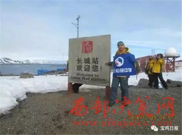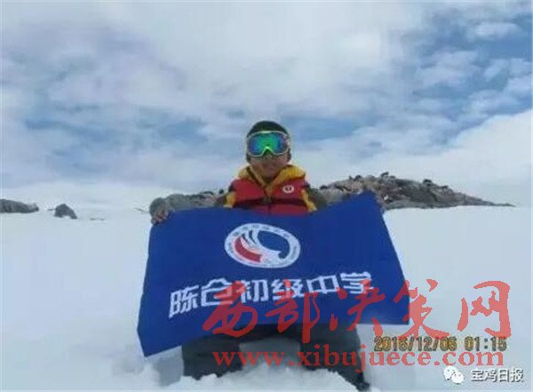 “看,那就是張家成!”,“張家成是陳倉初中的驕傲!”近日,陳倉初中九年級五班學(xué)生張家成去南極游學(xué),而且他還把陳倉初中的校旗帶到了南極,從而成了校園里的“名人”。