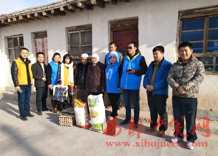 1月13日,寧夏海興義工聯(lián)合會(huì)銀川辦事處的工作人員來(lái)到銀川市賀蘭縣南梁臺(tái)子鐵東村、鐵西村,慰問(wèn)當(dāng)?shù)?戶(hù)孤寡貧困家庭,捐贈(zèng)米面油和棉衣等生活物品,  “大娘,還有半個(gè)月就過(guò)年了,這是咱們企業(yè)的一點(diǎn)心意,祝您老身體健康,吉祥如意”。這次慰問(wèn)空巢老人和貧困家庭的單位有:銀川培訓(xùn)學(xué)院、銀川美年大健康體檢醫(yī)院、海原馬軍飯莊、搏港旅游公司、寧夏雙玉農(nóng)業(yè)科技有限公司、寧夏塞杞源苗木專(zhuān)業(yè)合作社。今年年初,他們根據(jù)南梁臺(tái)子鄉(xiāng)提供的貧困戶(hù)名單,結(jié)合入戶(hù)走訪(fǎng),最終確定了馬寶林、馬萍霞等8戶(hù)殘疾、孤寡貧困家庭。由寧夏蕊杰伯港旅游有限公司、 銀川美年大健康體檢醫(yī)院等7家協(xié)會(huì)成員企業(yè)共同出資購(gòu)買(mǎi)生活物品,逐戶(hù)慰問(wèn),反哺社會(huì)。