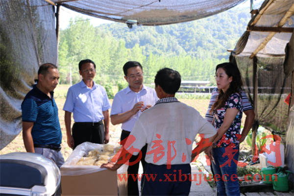 縣委書記演曉剛(左三)深入鎮(zhèn)調(diào)研產(chǎn)業(yè)脫貧工作