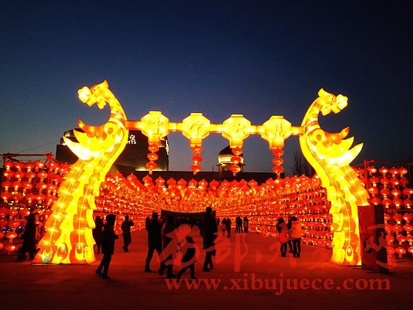 “永寧大集•大吉永寧” 新春花燈美食節(jié)于正月初一在中華回鄉(xiāng)文化園隆重啟幕,該活動將持續(xù)到元宵節(jié),為期十五天。作為銀川首屆綜合大型春節(jié)民俗活動,“永寧大集•大吉永寧” 新春花燈美食節(jié)以“花燈+美食+民俗+社火+互動”的形式,為廣大市民提供一場豐富多彩的“中國年大餐”, 本次新春活動比以往新年燈會更新穎豐富,花燈采取傳統(tǒng)自貢花燈與現(xiàn)代光影科技相結(jié)合的形式,為市民打造了一片流光溢彩的花燈海洋。