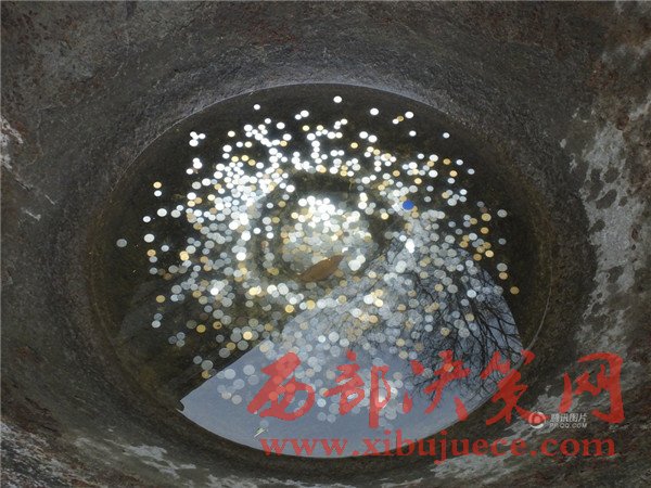 寺廟銅缸里的硬幣。