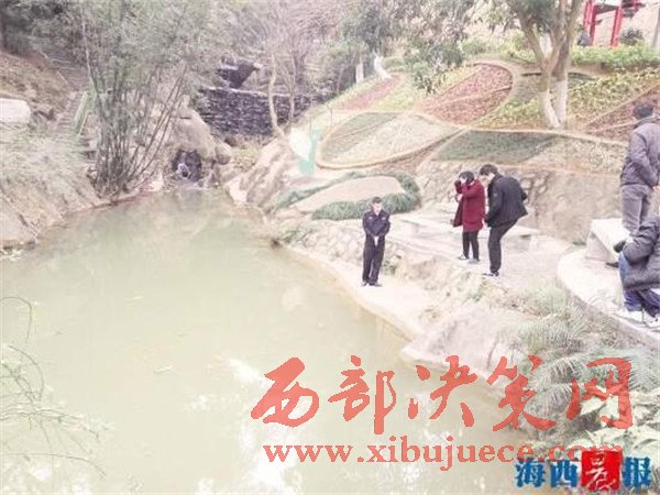 據(jù)落水男孩介紹,2月9日傍晚,他和其他兩個(gè)小伙伴在龍海市石碼鎮(zhèn)紫云公園望江亭旁的水塘邊玩耍,他沿著鄰水斜護(hù)坡行走,想爬到旁邊的石龜背上玩,不慎失足落入水中。