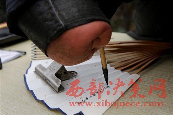 這名長發(fā)先生被賈維軍的精神打動,用100元買了一把賈維軍的書法折扇。