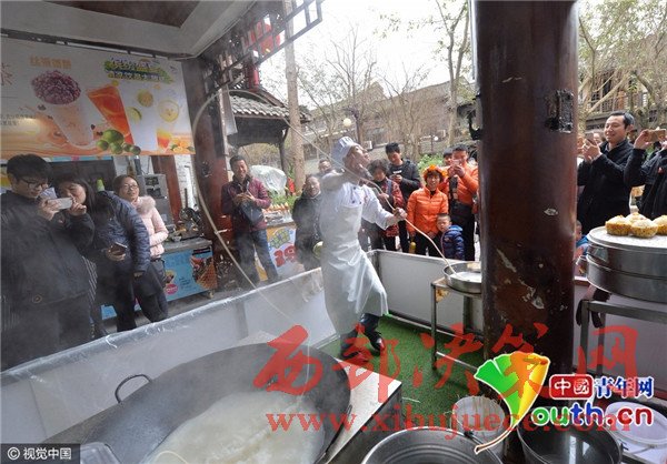 2月22日,田波如往常般工作,面館門口聚集了里外三層的圍觀者。正在拉面的田波,表演的正是網(wǎng)絡(luò)上廣為流傳的那個(gè)版本。妖嬈的動(dòng)作,嫵媚的表情,配上黃齡的那首《癢》,整個(gè)畫面活色生香。
