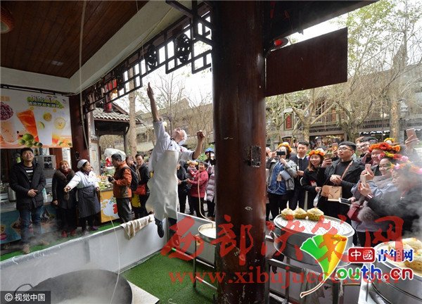 "我當(dāng)時(shí)就想著搞點(diǎn)花樣,來招攬客人。"田波告訴記者,一開始他只是簡單地扭幾個(gè)動(dòng)作,把原來扯面的動(dòng)作,變得更花哨。