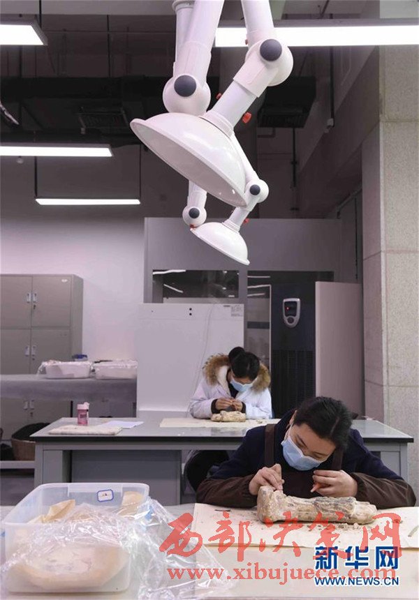 2月27日,成都考古研究所文物保護(hù)與修復(fù)中心工作人員在對(duì)出土文物進(jìn)行清理