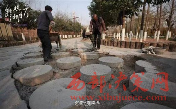 在西安,有人把這些磨盤鋪成了道路,還建成了公園讓人參觀。