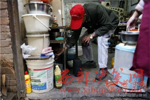 一進門,看見61歲的夏平安坐在門房里,端著個大老碗正在吃面。華商報記者問:“自己做的面?”他停止吃面,頭一抬,慢慢地說:“老板做的。”他待的是煤場門房,也是他的宿舍,屋子里靠墻擺著一張單人床,上面鋪著厚厚的被褥。院子里堆了好多已經(jīng)打好的煤球。
