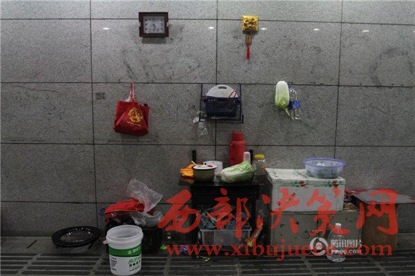 2016年11月27日,湖北武漢,10個(gè)流浪漢生活的中南財(cái)大地下通道,有床鋪、廚房、座椅、掛鐘、鏡子、自行車、取水處等,每天掃地,定期拖地,干凈整潔,儼然是一個(gè)溫馨家園。