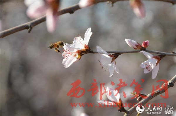 綻放的春花也吸引了蜜蜂來采蜜。