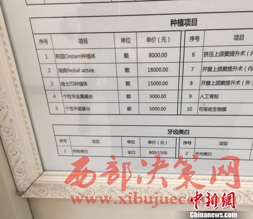 圖為北京一私立醫(yī)院的種牙項目價格。