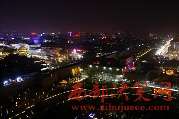 在鐘樓、鼓樓、大雁塔、長安塔等標(biāo)志性建筑物熄燈后,西安城墻不例外,城墻南門熄燈一小時,周邊商場以及飯店也都相繼熄燈。
