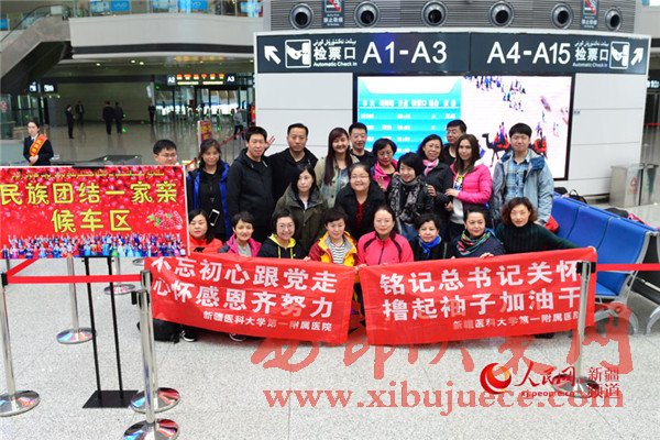 去和田“走親戚”的新疆醫(yī)科大學第一附屬醫(yī)院的干部人才在發(fā)車前合影留念