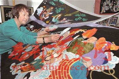 給堆繡圖中的各種人物點睛描眉。