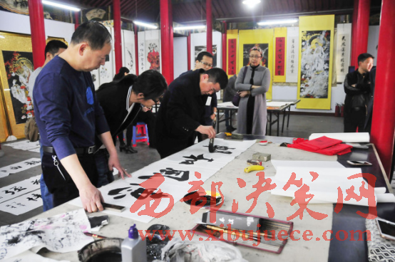 西部決策網(wǎng)-西部大開發(fā)訊(胡玉敏 通訊員 李海其 胡玉軍)4月13日下午,河北省邢臺(tái)市橋西區(qū)知聯(lián)會(huì)、邢臺(tái)市橋西區(qū)政協(xié)第三委員小組,在紫金公園聚義廳開展了書法文化交流活動(dòng)。活動(dòng)特邀我市知名書畫家現(xiàn)場(chǎng)揮毫潑墨,切磋書畫技藝,創(chuàng)作作品20余幅。民盟市委副主委付曉婭,橋西區(qū)政協(xié)主席張建波、區(qū)政協(xié)副主席趙振群、王之良等領(lǐng)導(dǎo)應(yīng)邀參加。